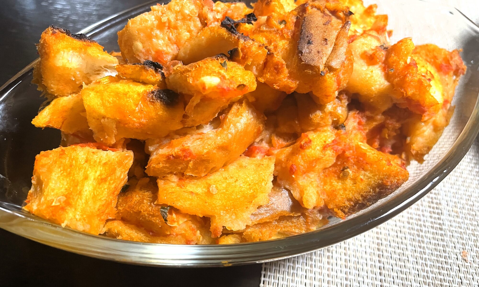トマトのクロスティーニは、簡単、手早できるレシピです。アペリティーボ(Aperitivo:食前酒)としてそのまま食するのがいいですが、刻んでサラダに加えてカリカリにしたり、冷めてもスープに崩して風味と香りを加えるのもおすすめです。