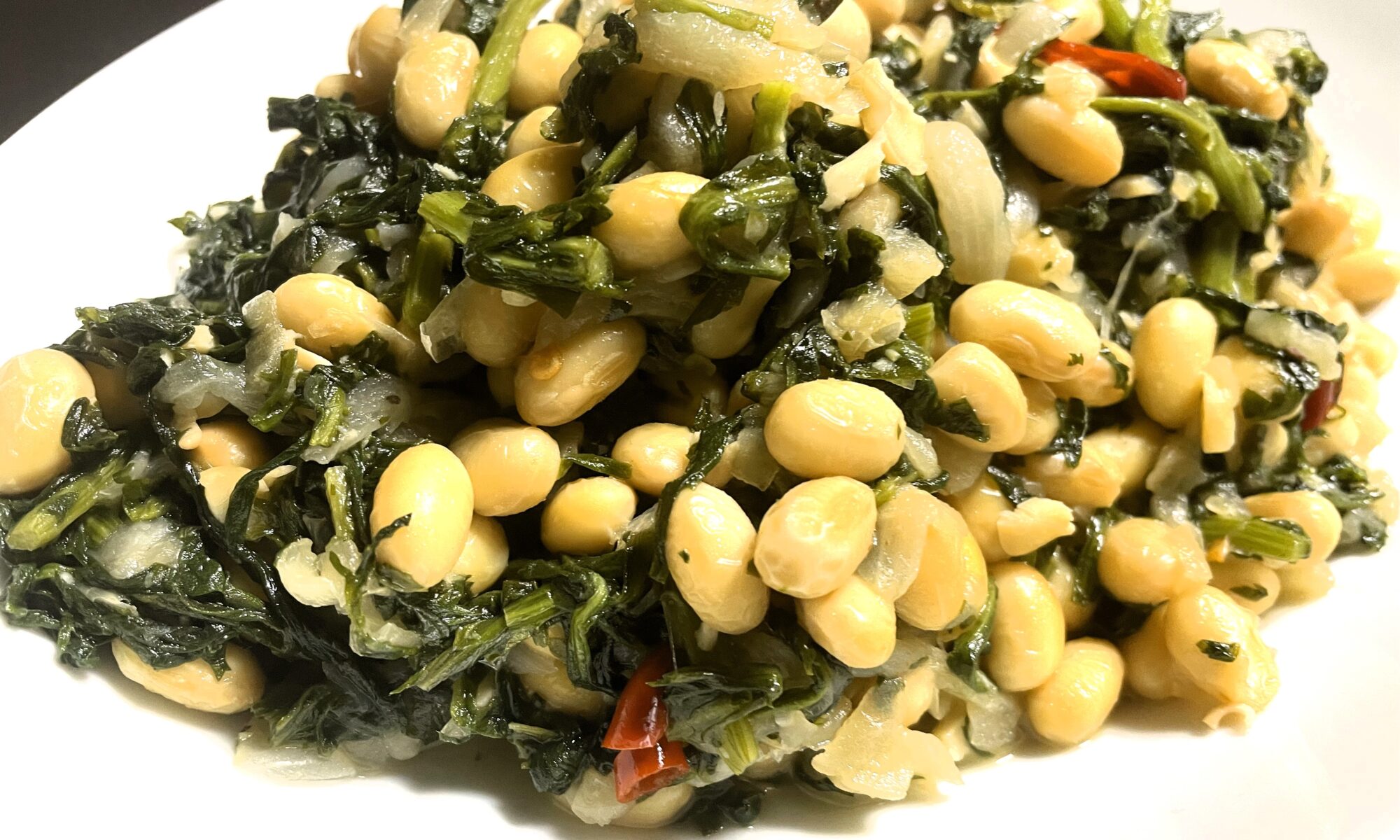 Fagioli di soia saltati in padella e crisantemo coronatoファジョリ・ディ・ソイア・サルタティ・イン・パデッラ・クリサンテーモ・コロナート