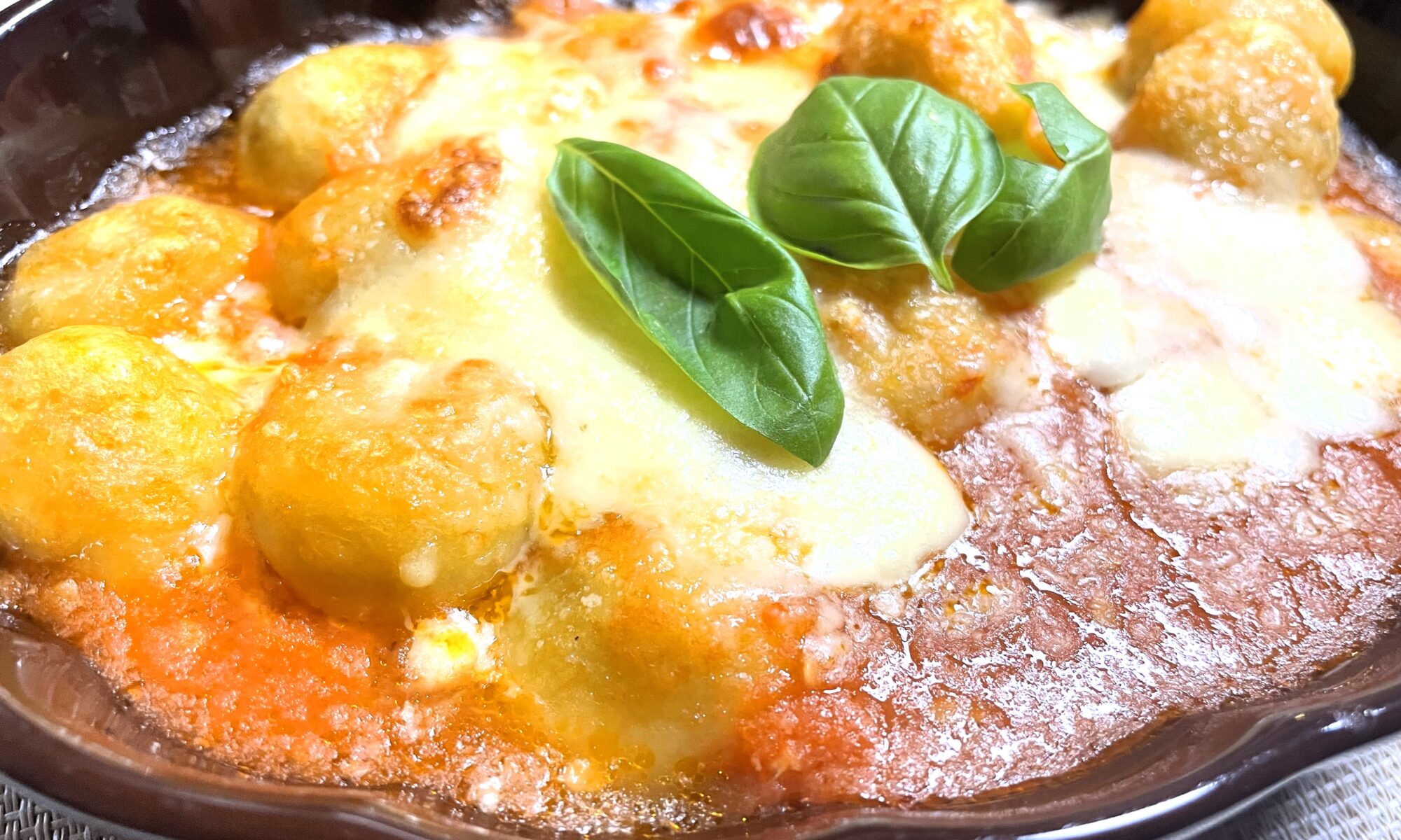 トマトにバジルとニンニクの風味を加えたソースのおいしさは既に皆が知るところですが、このソースをふんだんに使い、ニョッキのオーブン焼きにするこのレシピは、調理完成と共に拍手が沸き上がる皆が大好きな一品です。