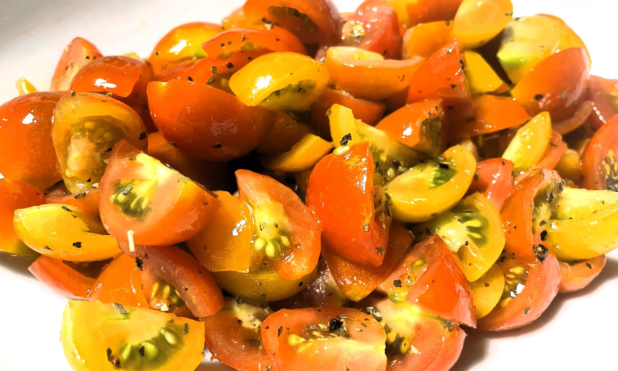 バジルとオレガノの比率やニンニク量もその日の気分で調整するのもあり、非常に簡単でありながらどのような料理にも合う美味しいサラダです。