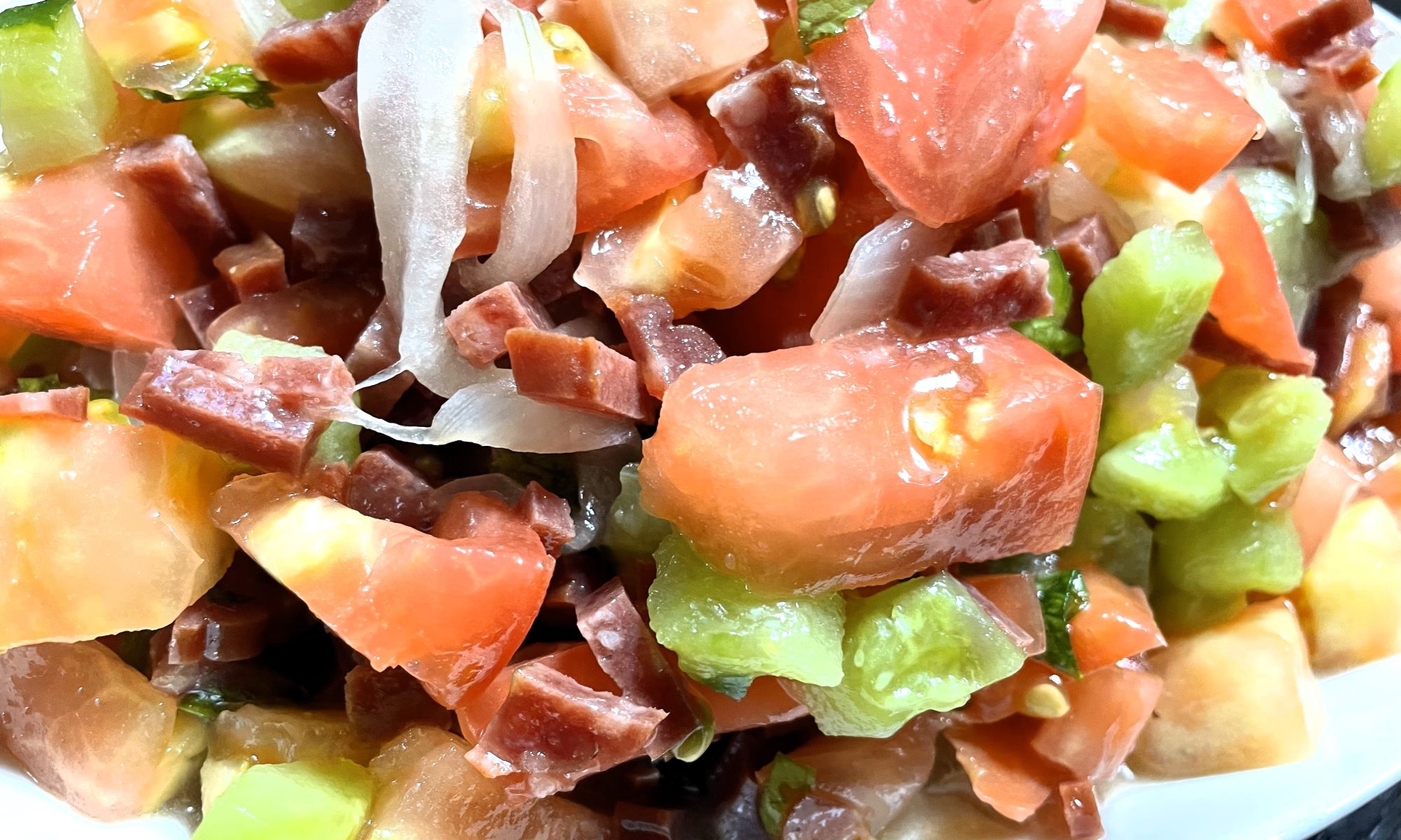 Insalata di pomodori e salameインサラタ・ディ・ポモドーリ・エ・サラメ