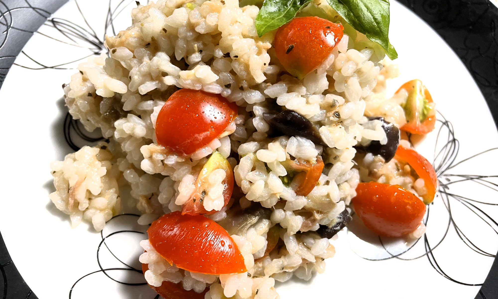Insalata di riso con tonno melanzane e pomodoriインサラタ・ディ・リーゾ・コン・トンノ・メランザーネ・エ・ポモドーリ