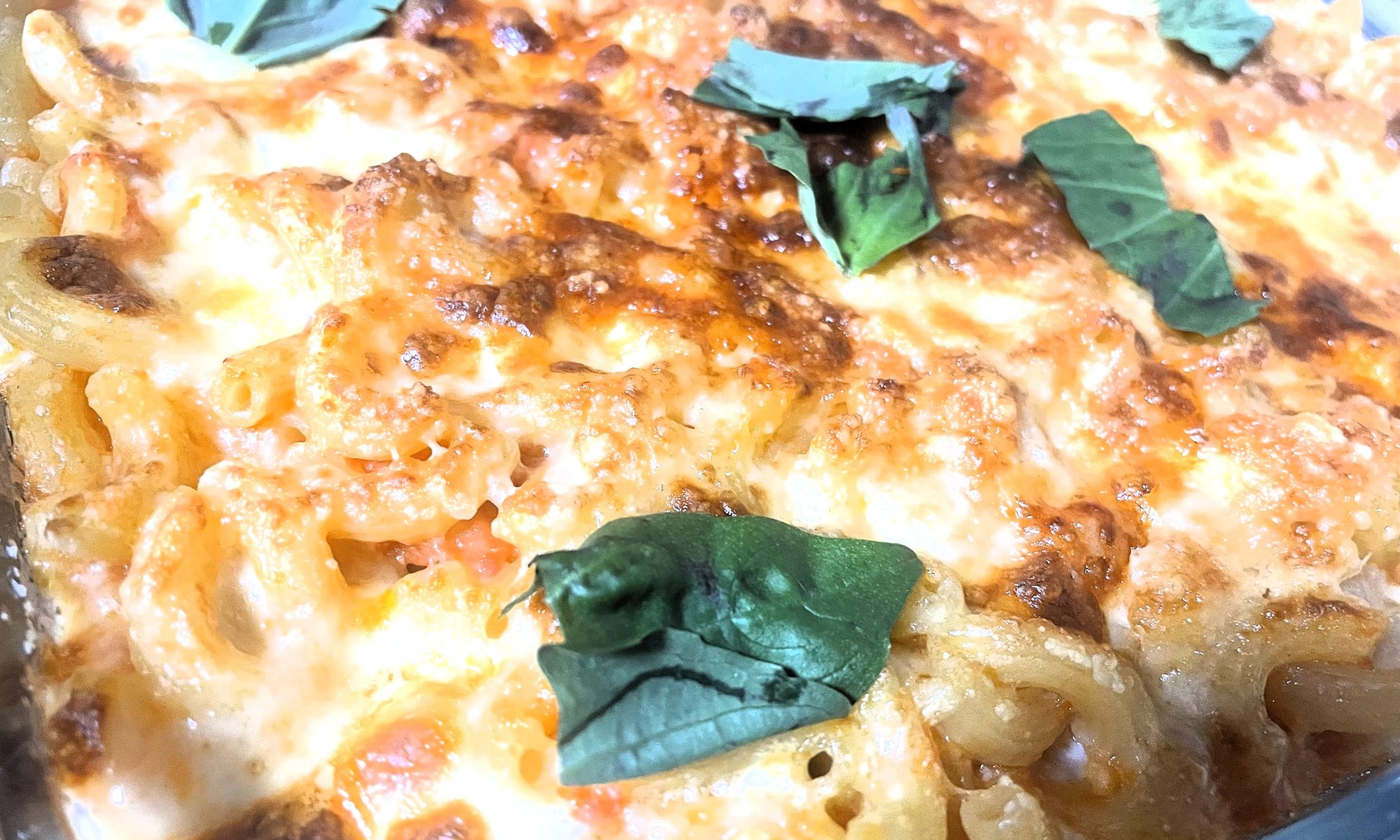 トマトソースを美味しく作ったら、パスタと混ぜ合わせてチーズと焼くだけの簡単調理です。