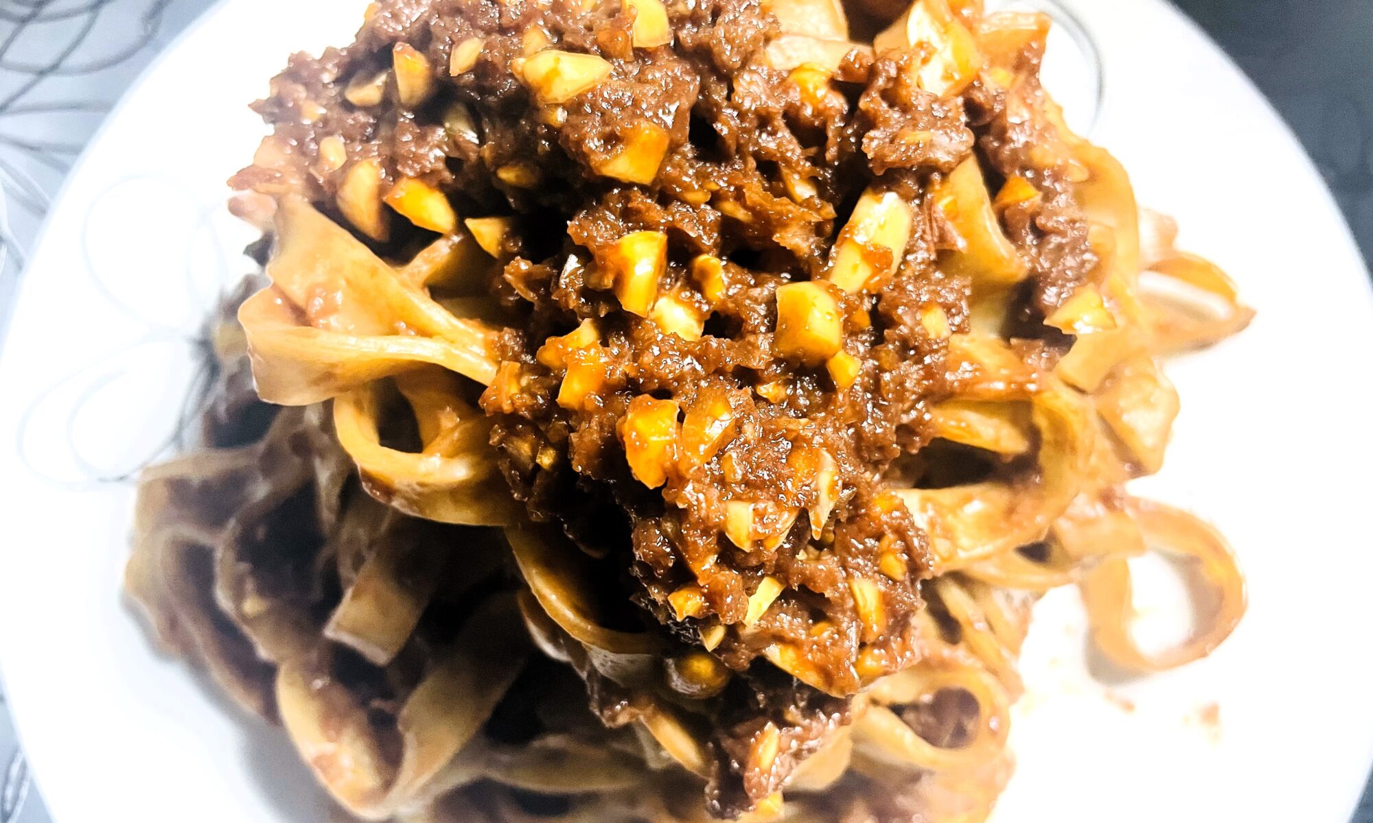 ウンブリア州の伝統料理で、甘いチョコレートパスタ(Pasta dolce al cioccolato)や甘いマカロニ(Maccheroni dolci)とも言われる品で、今回はタリアテッレ(Tagliatelle dolci alle noci)仕上げにしました。、