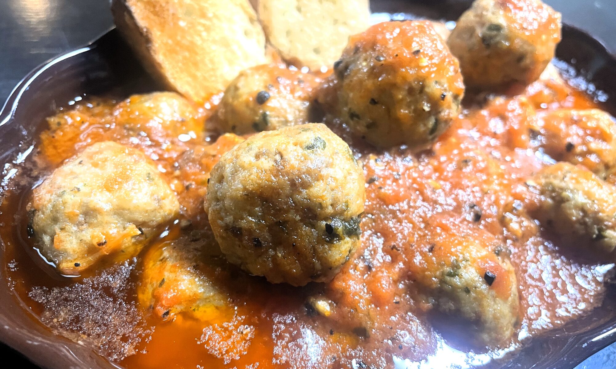 この料理はできれば、クロスティーニやフォッカチャ等のパンと一緒に食べたいですね。材料分量は2名分ミートボール12個分です。