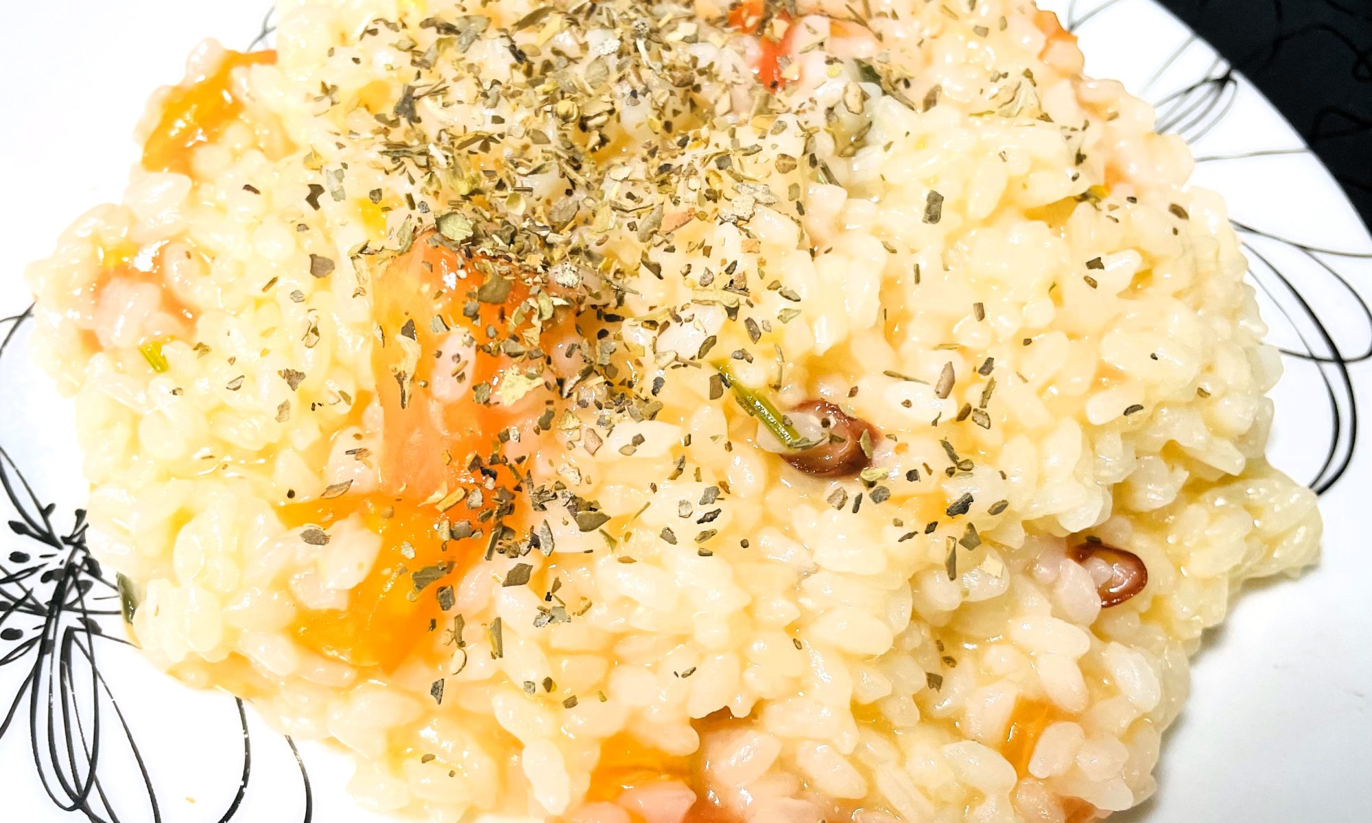 パスタ調理と同様にじっくりとリゾッターレして、米にソースを閉じ込めるのが美味しくなるコツです。