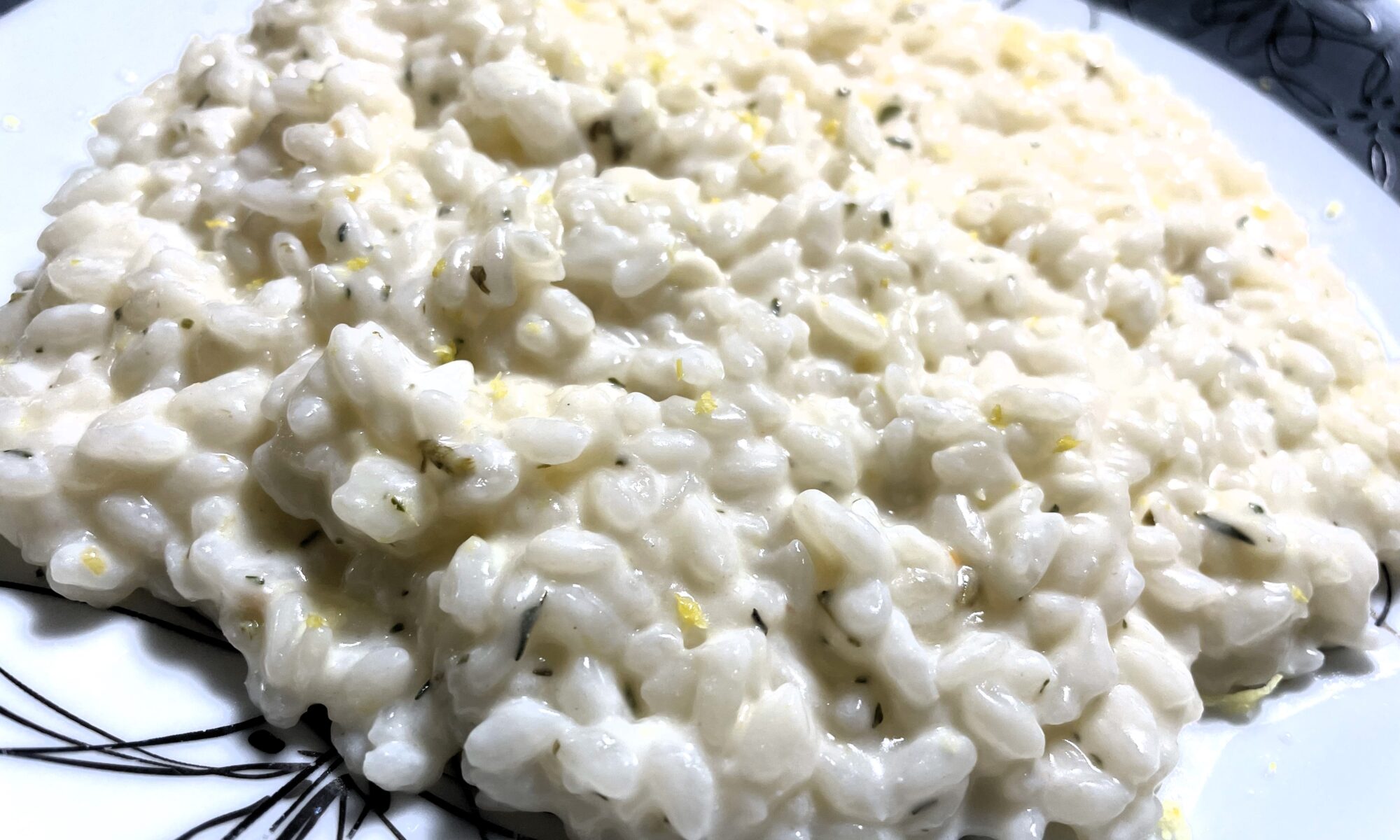 今日紹介のバージョンでは、バターを使わずにクリーム状にしたクリーミーで繊細な最初のコースであるレモンリゾットです。