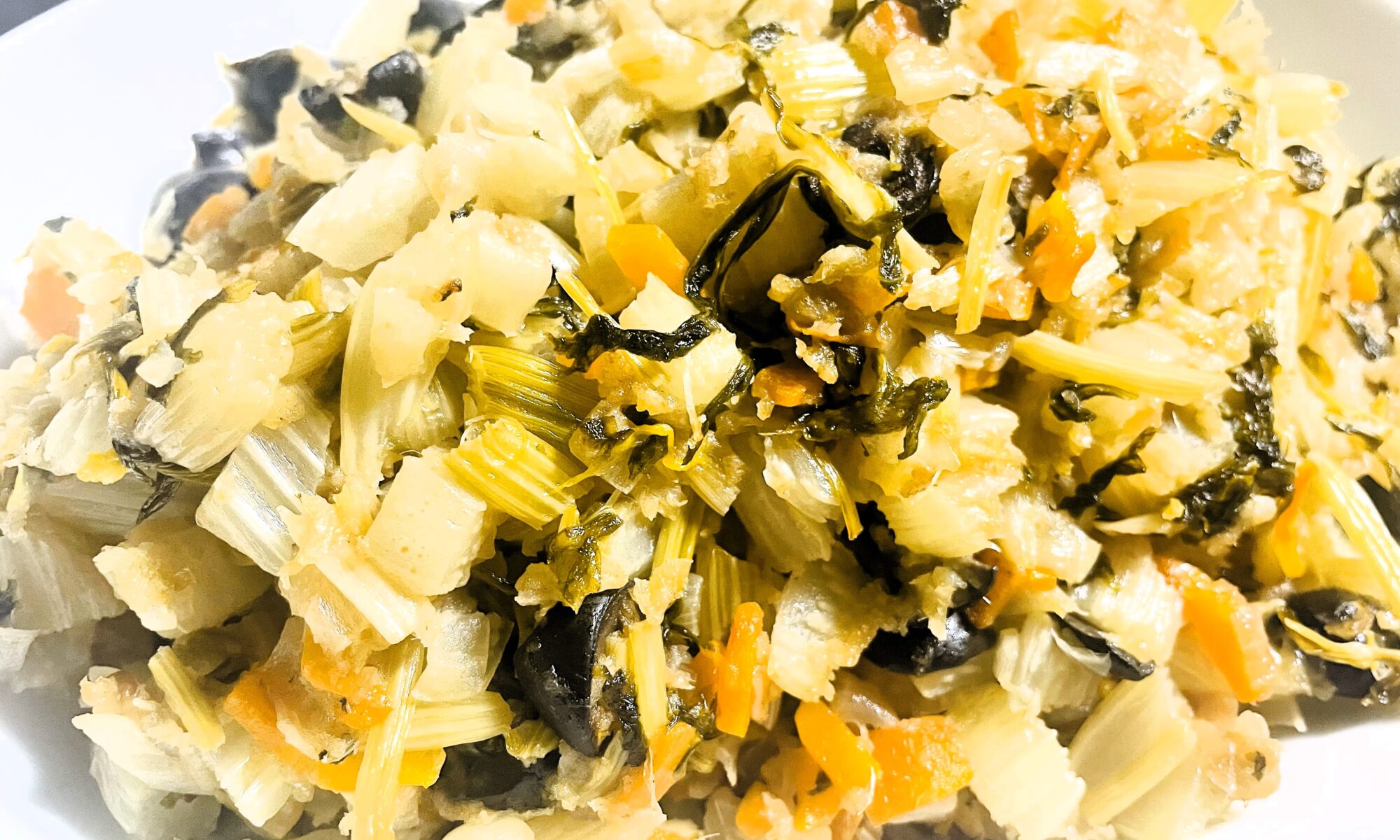 セロリを茹でずに炒め煮込んでいくタイプの調理法なので、少々香りが強いです。