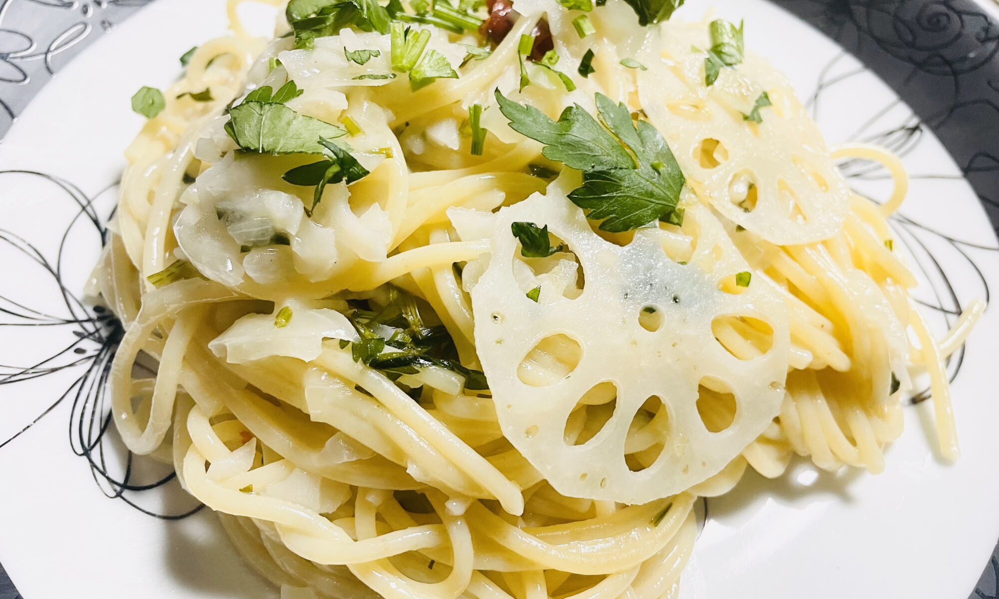 蓮根のスパゲッティ/ペペロンチーノ仕上げを評価する